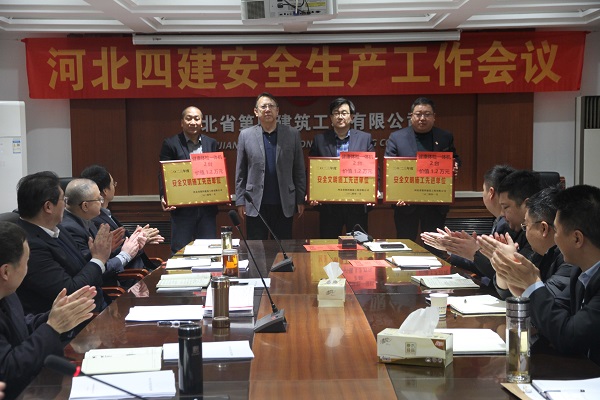 会上表彰了2023年度安全文明施工先进单位、第四季度智慧工地“安全管理系统”应用评比受到嘉奖的单位、第四季度省市安全管理信息系统及公司综合管理系统应用评比受到嘉奖的单位,公司领导为获奖单位颁奖。(安全管理部)